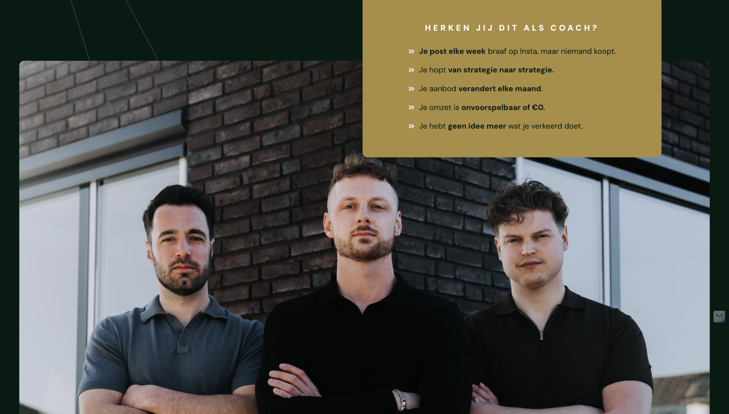 Hun website was niet meer dan een simpele, zwarte pagina met één afbeelding. Geen uitstraling, geen verhaal, geen beleving. Terwijl ze juist zoveel méér wilden uitstralen: professionaliteit, vertrouwen en kracht.